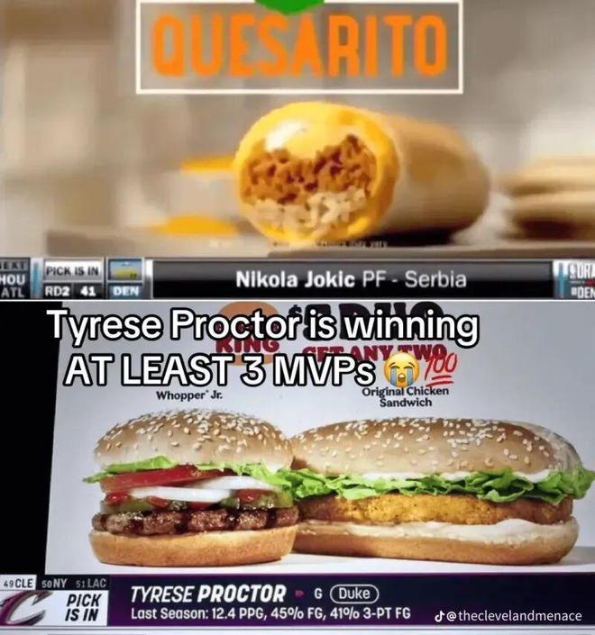 值得一提的是,选秀大会当天,骑士49顺位选中普多克特时,电视汉堡广告调侃:骑士也选中了三届MVP。