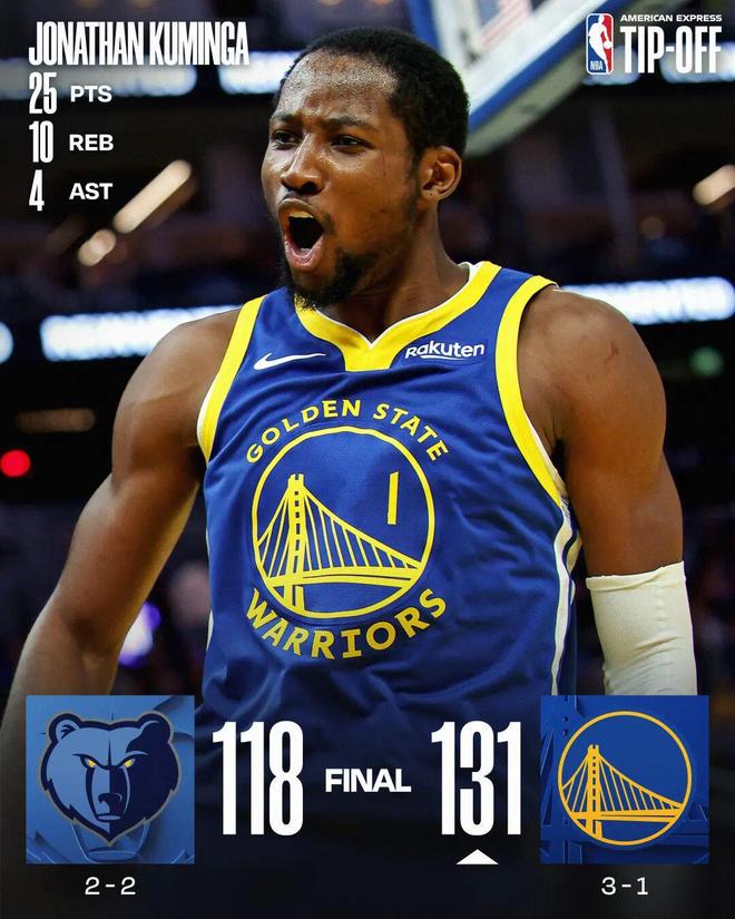 库明加25+10库里巴特勒划水 勇士轻取灰熊